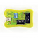 Ein absolutes Multitalent. Drei verschiedene Programmiermodis ermöglichen unterschiedliche Einsatzbereiche. Es können sowohl Atmel AVR über die ISP-Schnittstelle als auch Cortex-M Controller von ST und NXP sowie ESP32/8266 über den UART-Bootloader programmiert werden. Mit einem DIP-Schalter kann man zwischen Atmel AVR, STM32, NXP/LPC oder ESP32/8266 auswählen.